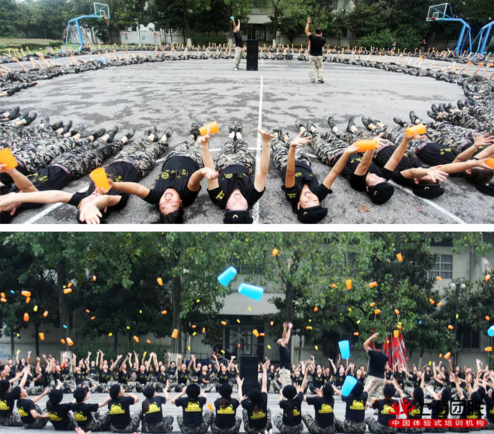 團(tuán)隊(duì)風(fēng)采展示、列隊(duì)練習(xí)、挑戰(zhàn)5分鐘團(tuán)隊(duì)擰成一股繩,塑造團(tuán)隊(duì)精神。