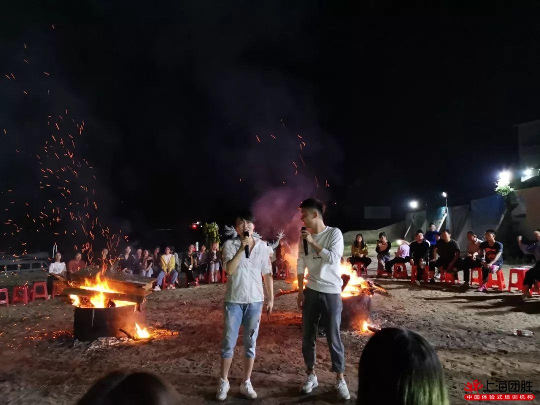載歌載舞的上海拓展公司篝火晚會活動